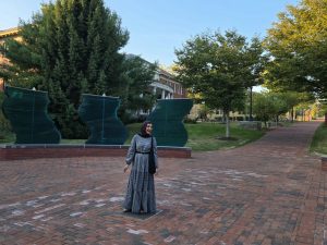 Sarah Ghazal Ali visits Allegheny College and visits the Danny Lane Sculpture in September 2025